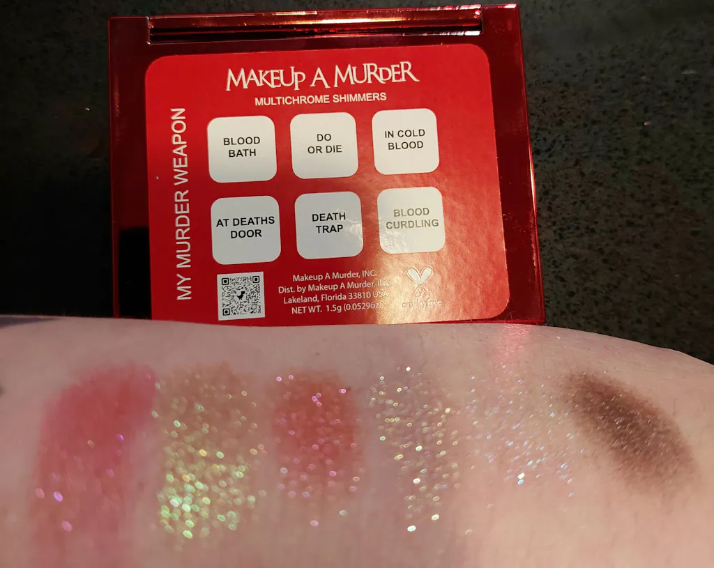 Pick your weapon. The My Murder Weapon Eyeshadow Palette is a travel-size hard plastic palette with a built-in mirror, loaded with 6 glittering and shifting shades built for drama. Part of the Bad Blood Collection.