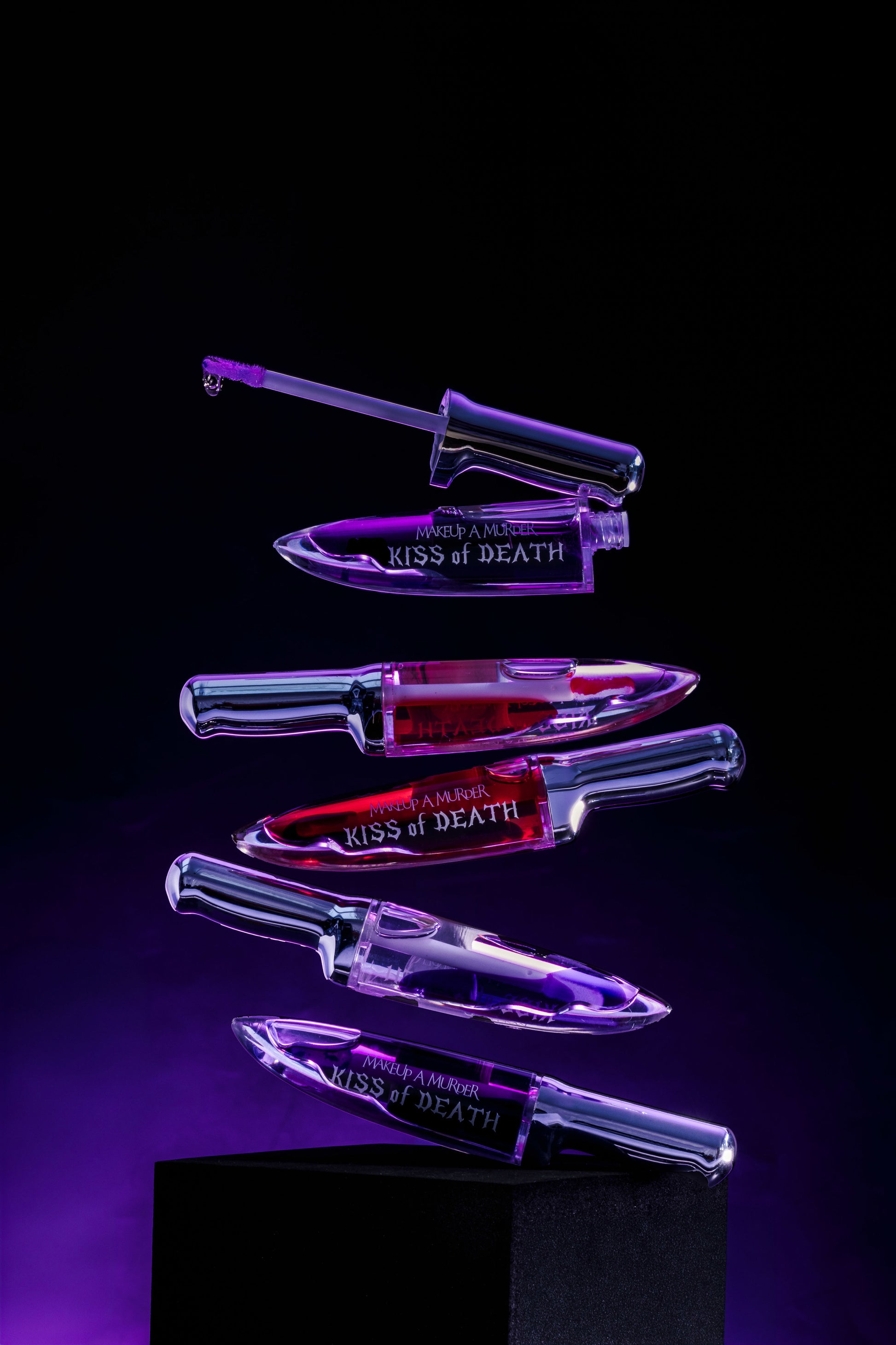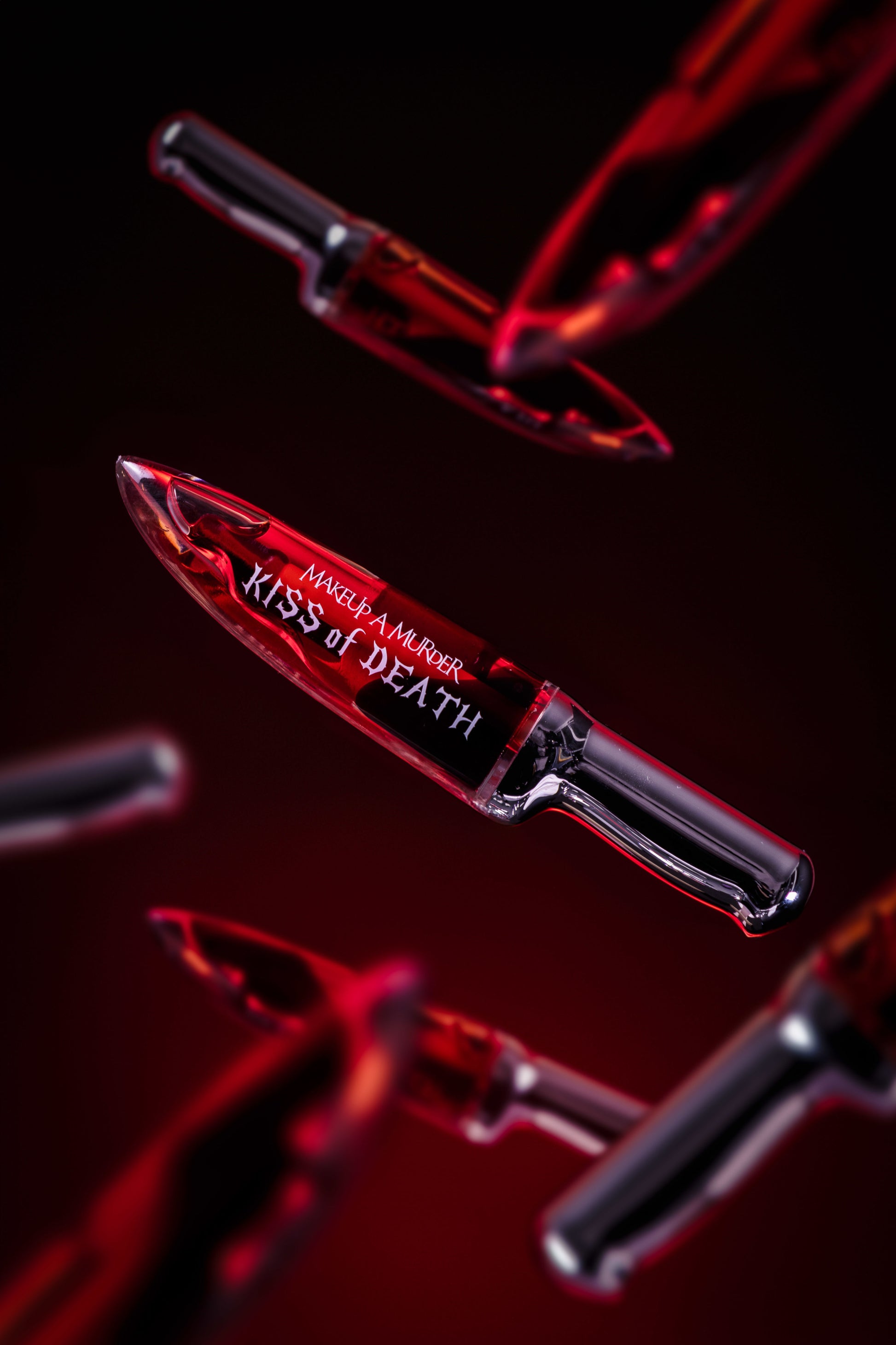 Kiss of Death Lip Oils: Laid to rest in its very own velvet lip casket are our infamous knives filled with the bloodiest hydrating lip oil formula. Our bloody elixir will leave your lips dying for more and your enemies envious.
